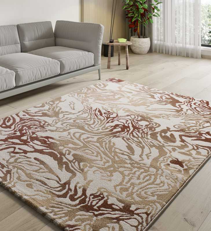 Conoce la alfombra abstracta 13004 en caldera con un diseño artístico y una combinación cromática envolvente. Esta alfombra se convierte en el punto focal de la estancia. Perfecta como alfombra de salón o dormitorio para vestir el suelo con personalidad y añadir una sensación de confort visual y táctil.