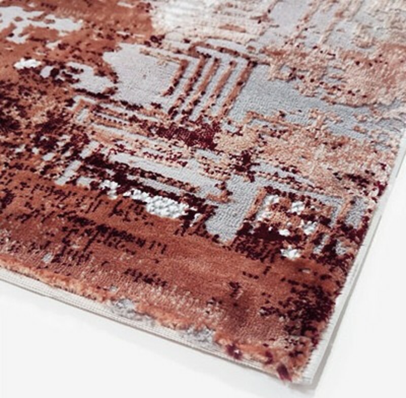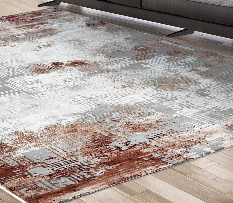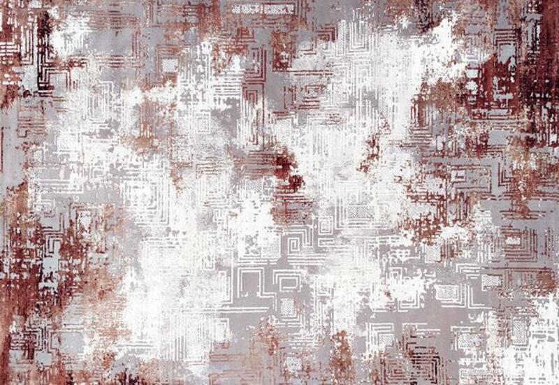 Alfombra moderna de diseño abstracto en tonos caldera. Una alfombra de alta calidad con 500.000 nudos por m2.