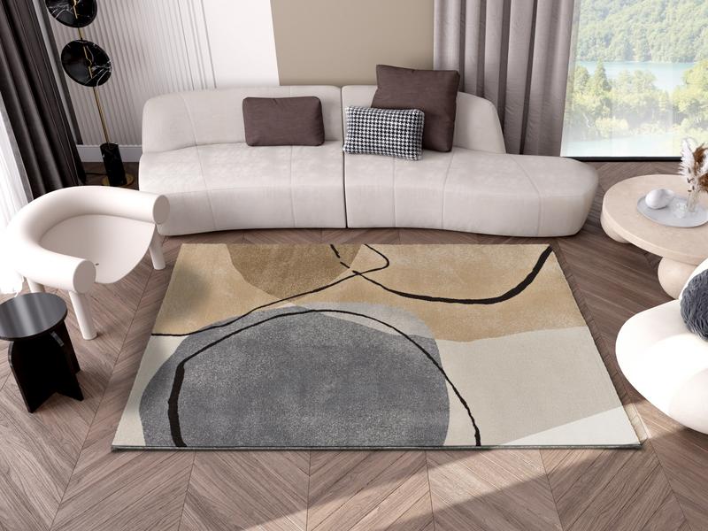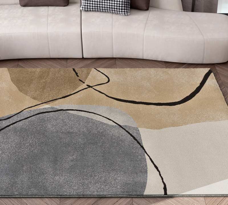 La alfombra abstracta Lessia en beige, es una pieza de diseño vanguardista que transforma el suelo en un lienzo de arte moderno. Con una composición equilibrada de formas orgánicas y líneas fluidas, esta alfombra es la elección perfecta para quienes buscan una decoración minimalista.