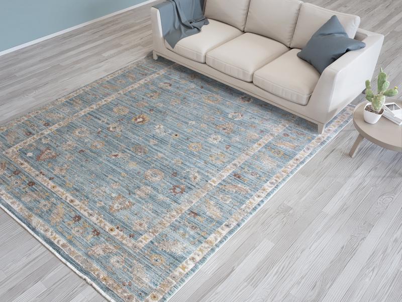 Las alfombras azules son piezas que evocan calma, frescura y sofisticación en cualquier estancia. Este color, inspirado en los infinitos matices del cielo y el mar, transforma los espacios con un efecto relajante y elegante que perdura en el tiempo.