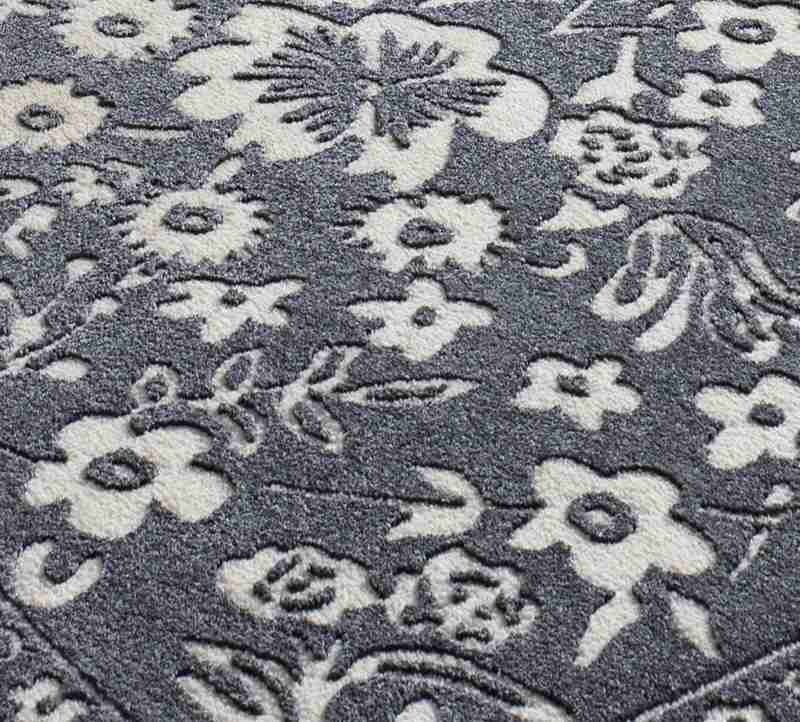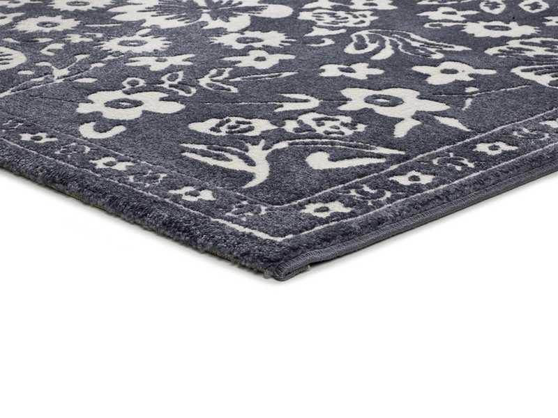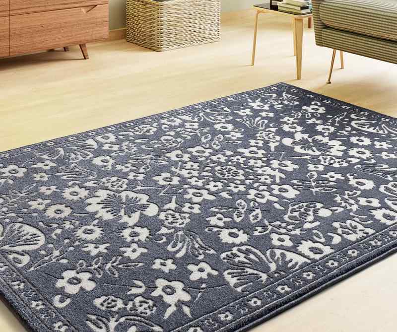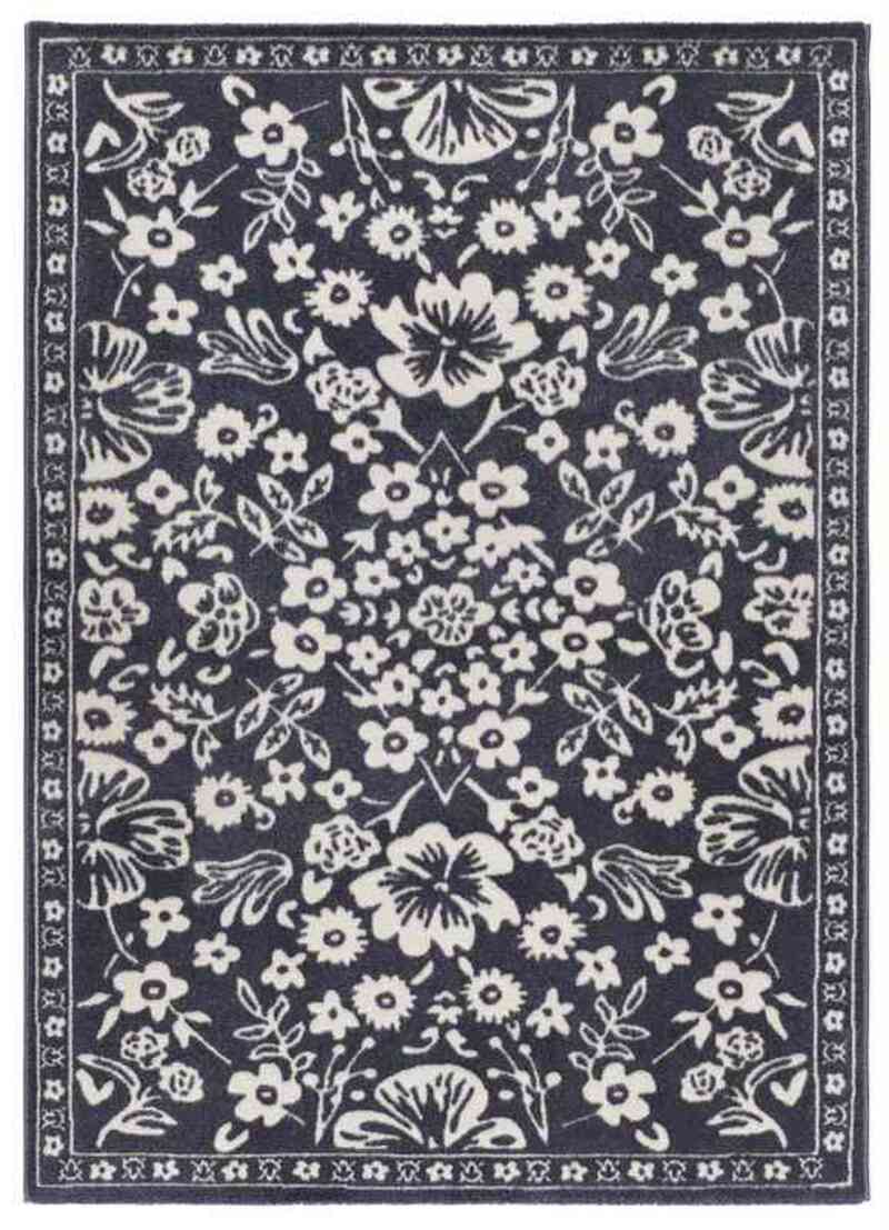 La alfombra clásica y vintage 12994 Azul, captura la esencia de la decoración modernista. Añade un toque romántico y atemporal a tu salón o dormitorio gracias a su diseño de inspiración botánica con un tapiz de flores y hojas que contrastan con su fondo en azul oscuro.