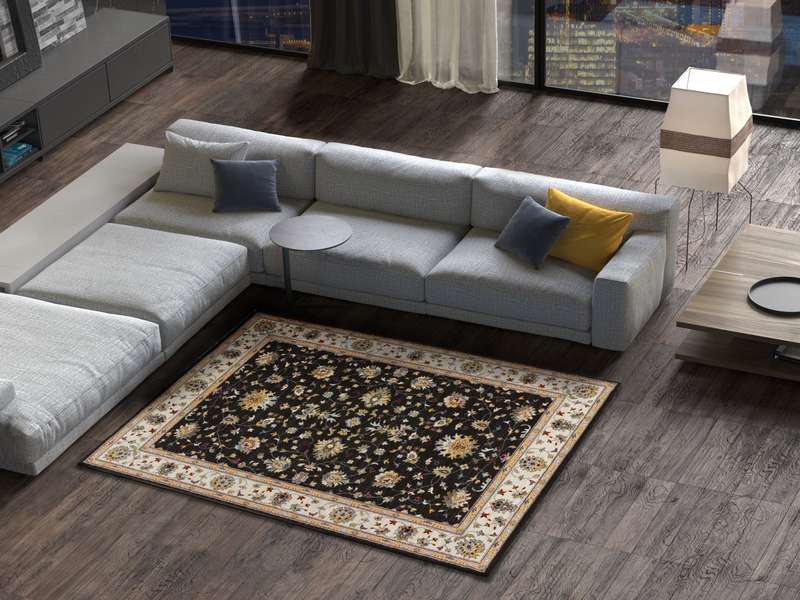 Alfombra Clásica de Diseño Persa y fondo antracita.