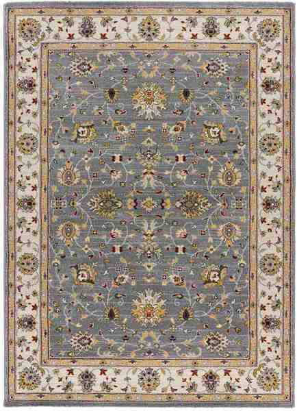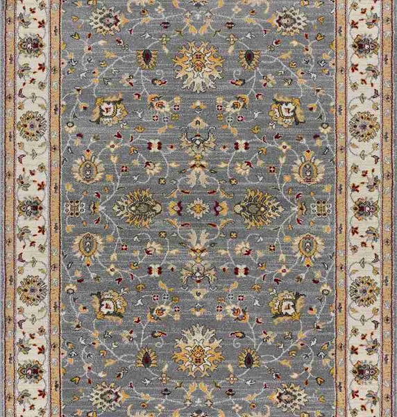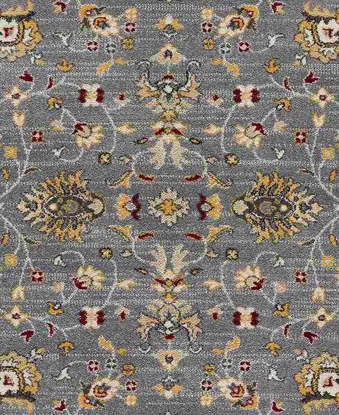 Alfombra Clásica de Diseño Persa y fondo gris claro.