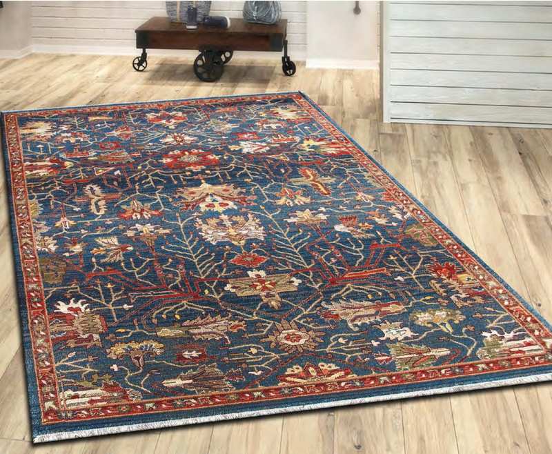 Alfombra Clásica de estilo Persa con motivos florales en tono Azul.