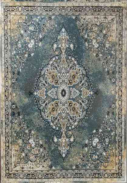 Alfombra Clásica de estilo Vintage con medallón central y tonos Azules.