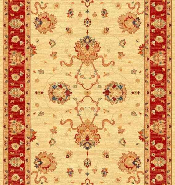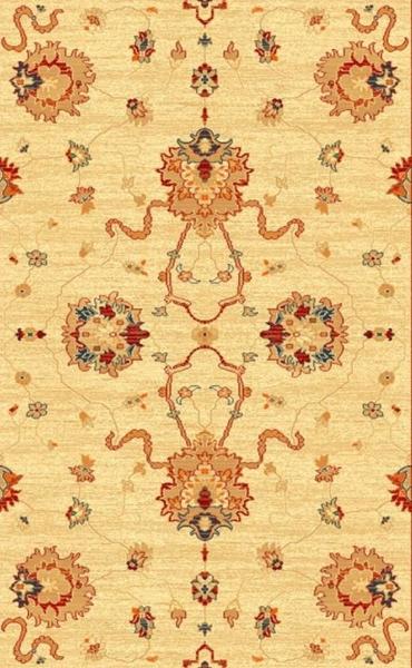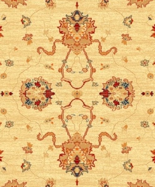 Alfombra Clásica en tonos Beige, fabricada en Crevillente con materiales nobles (pura lana virgen), resistente al uso y con una clasificación 5 estrellas concedida por la asociación UNIFAM (Alfombras de Crevillente).