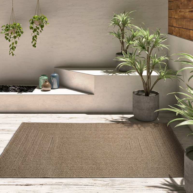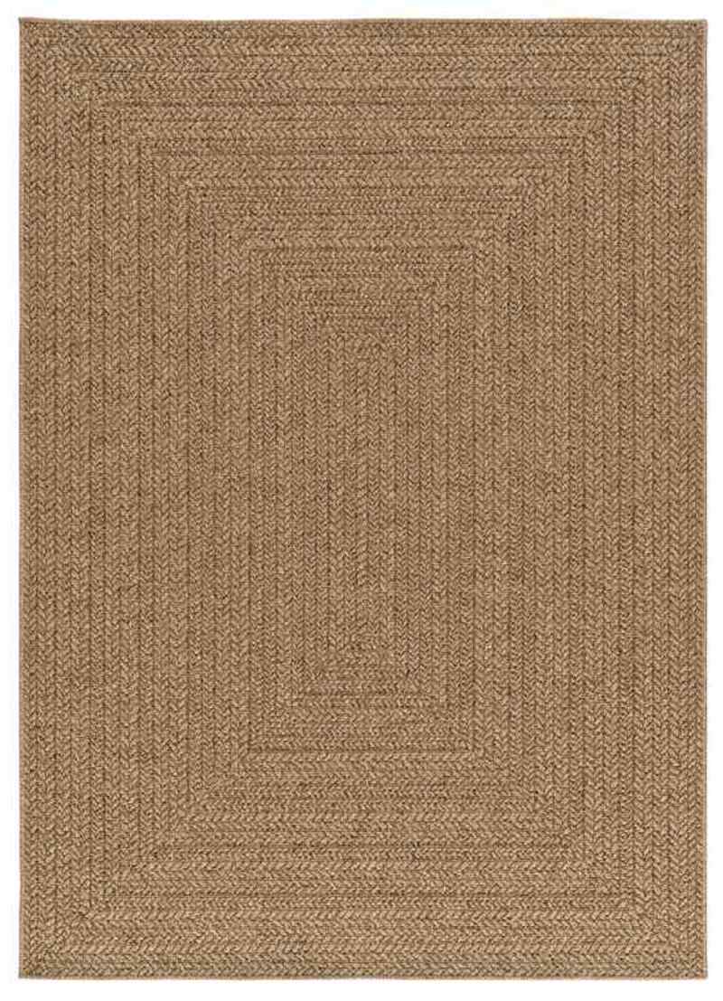 Esencia mediterránea en tu casa o jardín con la alfombra de exterior-interior 5001 Natural. Su diseño de trama en espiga en tonos naturales añadirá un toque rústico a tu salón, dormitorio o espacios exteriores. Su composición en polipropileno la hace una alfombra duradera y fácil de mantener, además es resistente al agua y al sol.