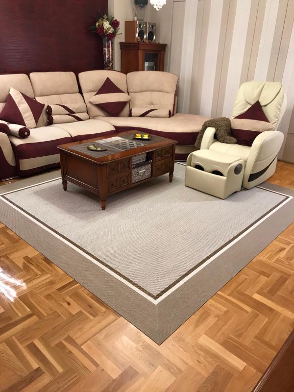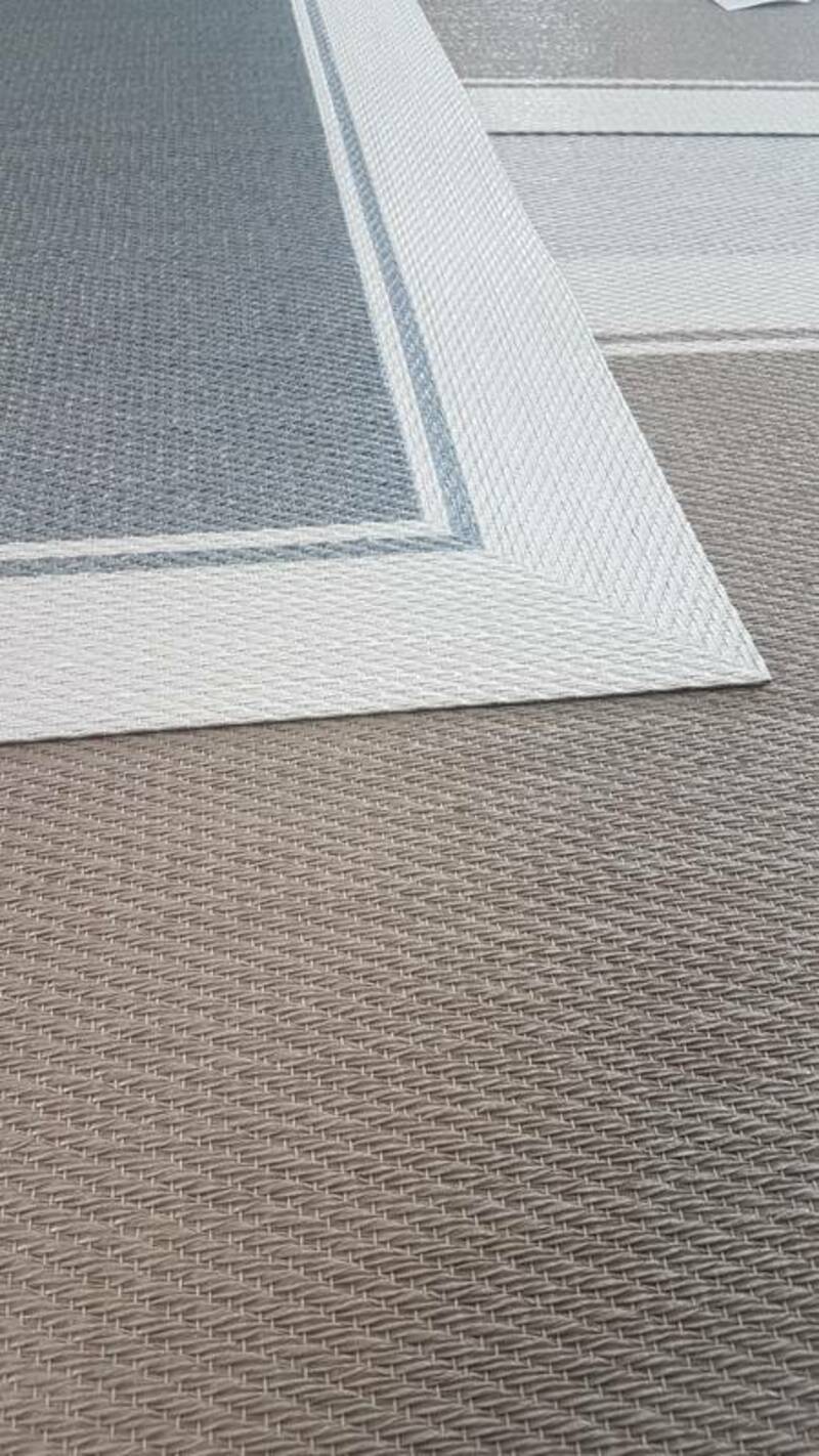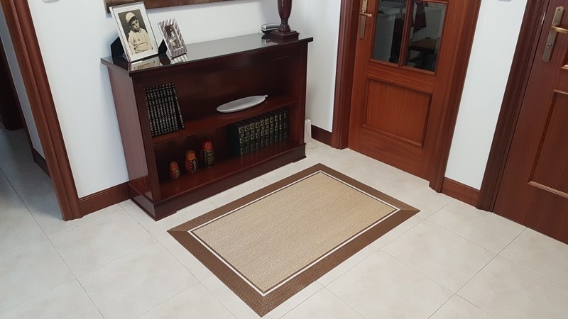 Alfombra vinílica de alta calidad y estampación digital en varios tonos, a elegir color de centro y cenefa con una línea de 1 cm incrustada en esta última.