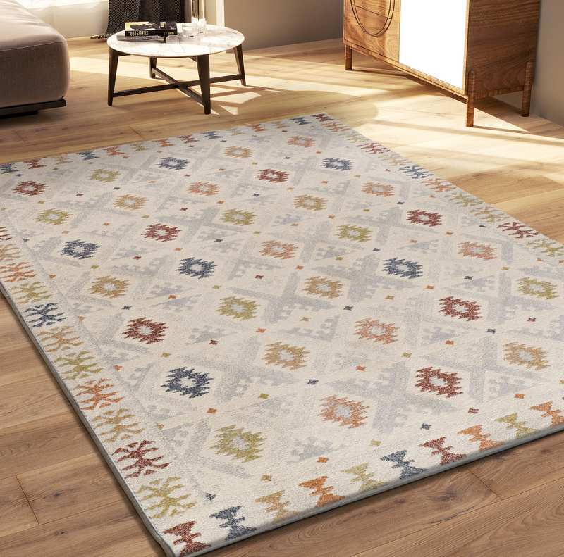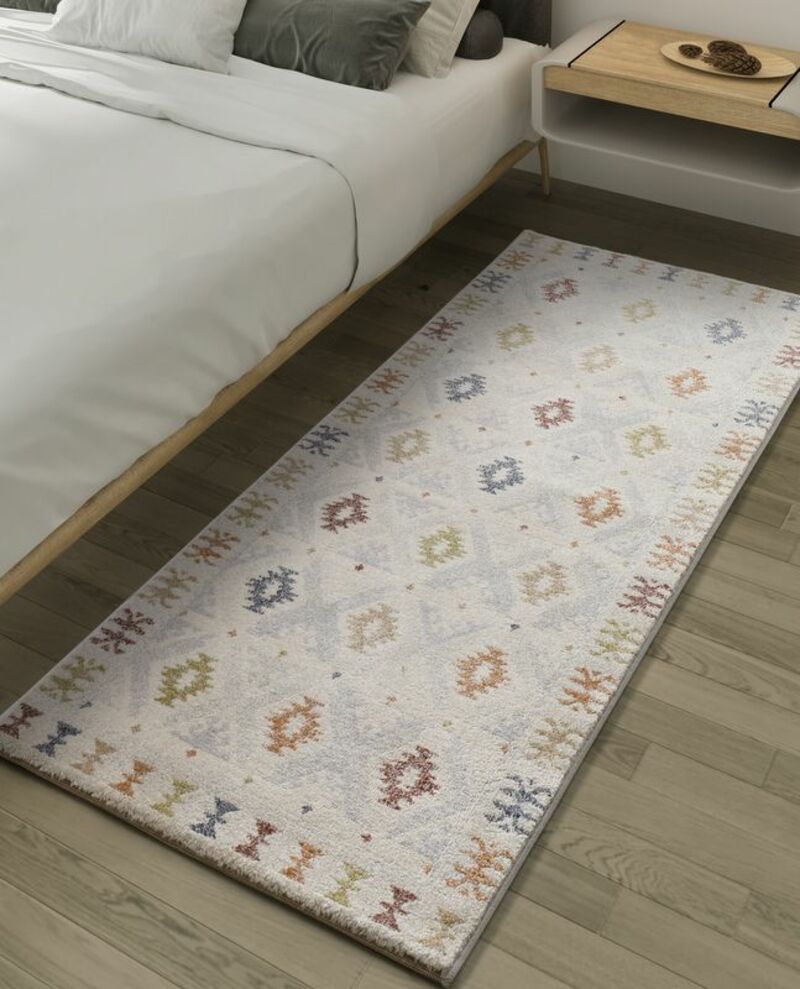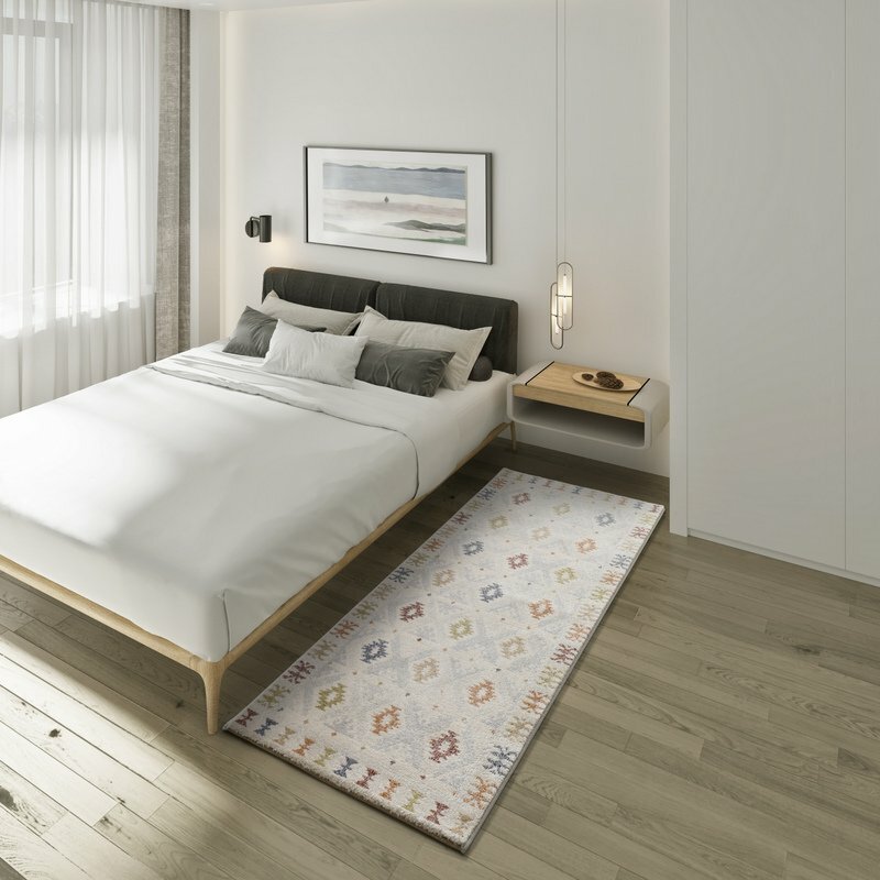 La alfombra étnica 16805 multicolor, es perfecta para decoraciones boho-chic. Su diseño atemporal de inspiración kilim, hará que esta alfombra de salón o dormitorio se convierta en la protagonista de tu casa.