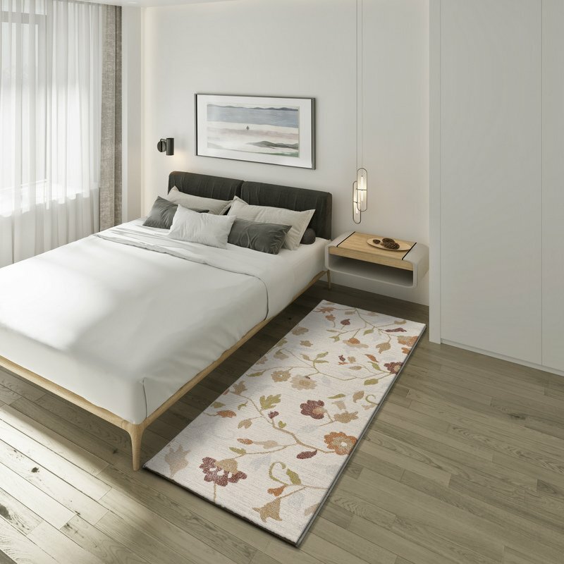 La alfombra con motivos florales 16807 Multicolor, es perfecta para decoraciones que buscan dar un toque de luz y color. Su diseño en colores naranjas, tejas y verdes, hará que esta alfombra de salón o dormitorio se convierta en la protagonista de tu casa.
