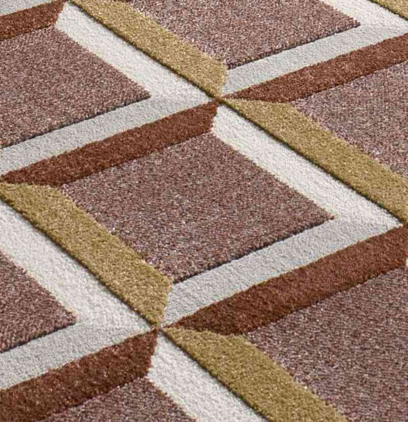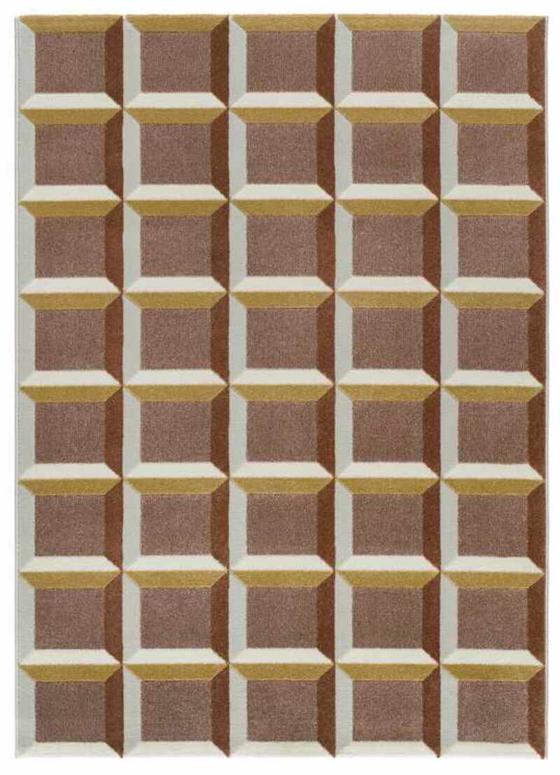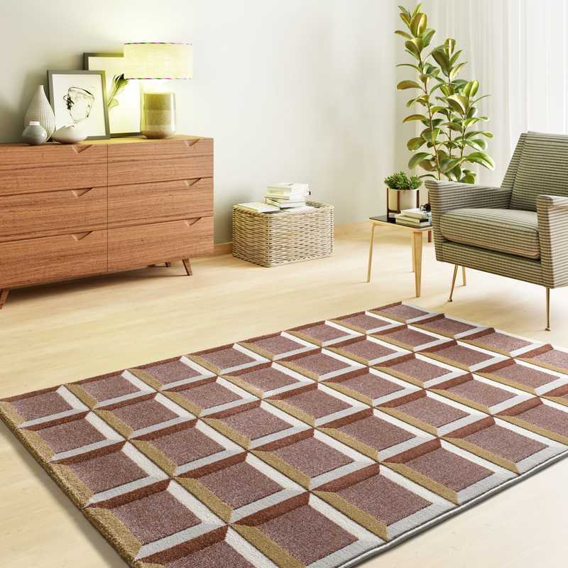 La alfombra geométrica 12997 Caldera está inspirada en la decoración retro y vintage, combinando tonos caldera y mostaza con sus formas geométricas. Es la alfombra ideal para salones y dormitorios modernos. ¡Atrévete a combinar estilo contemporáneo y confort!