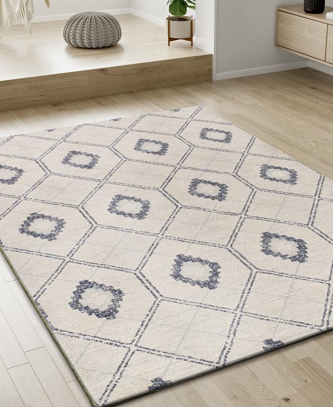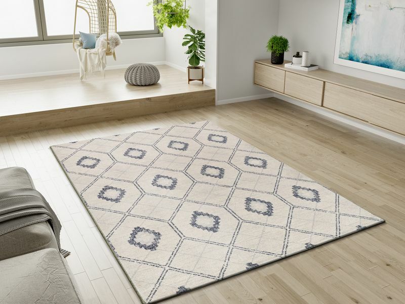 La alfombra geométrica 16806 Azul combina cuadros y rombos de colores azulados, inspirados en la decoración ornamental. Esta alfombra de salón o dormitorio se ajustará perfectamente a cualquier decoración.