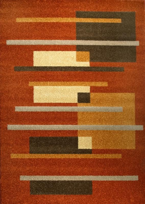 Alfombra Moderna de diseño Geométrico, fabricada en Crevillente (España) con colores cálidos.