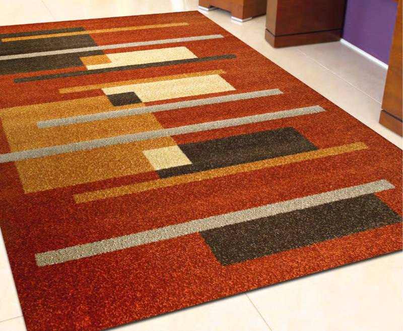 Alfombra Moderna de diseño Geométrico, fabricada en Crevillente (España) con colores cálidos.