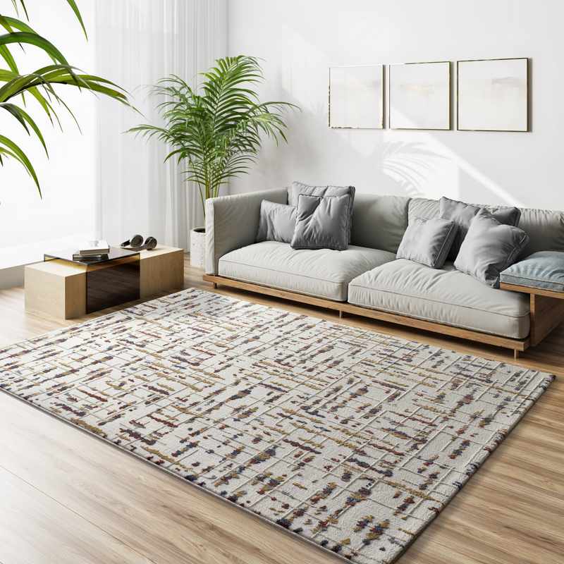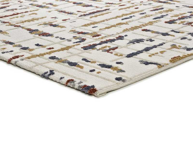 La alfombra geométrica 12992 Multicolor, destaca por su sofisticado diseño de inspiración lineal. Su patrón utiliza una base crema para resaltar una cuadrícula de trazos rotos en una paleta multicolor equilibrada. Es la elección ideal para quienes buscan un elemento decorativo con personalidad pero que mantenga una sensación de orden y limpieza visual.