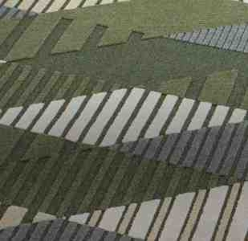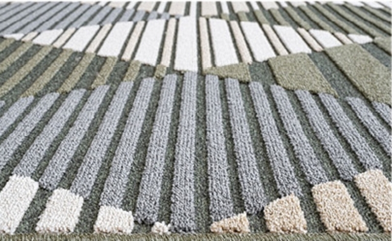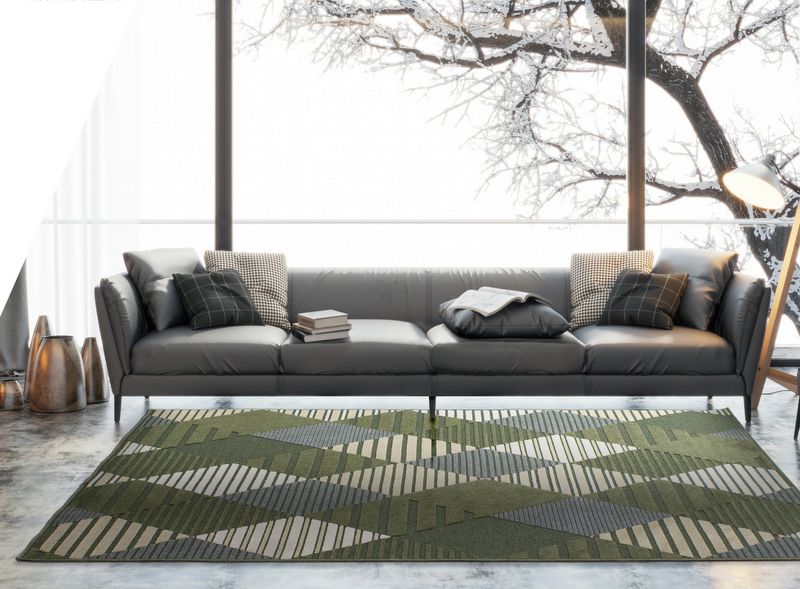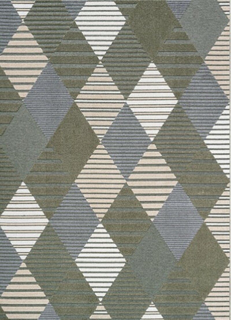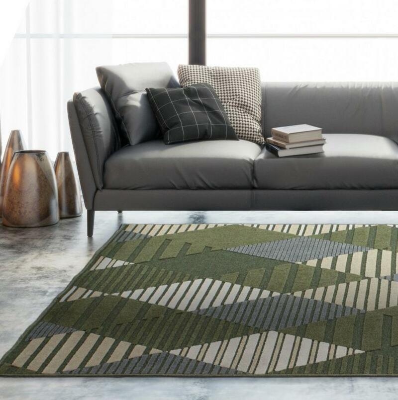 Alfombra moderna de diseño geométrico Rf. 11 VERDE, en tonos verde, beige y gris.