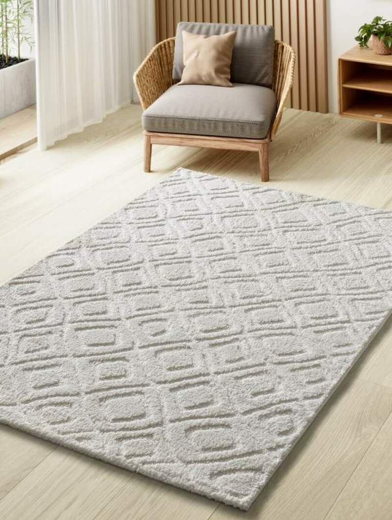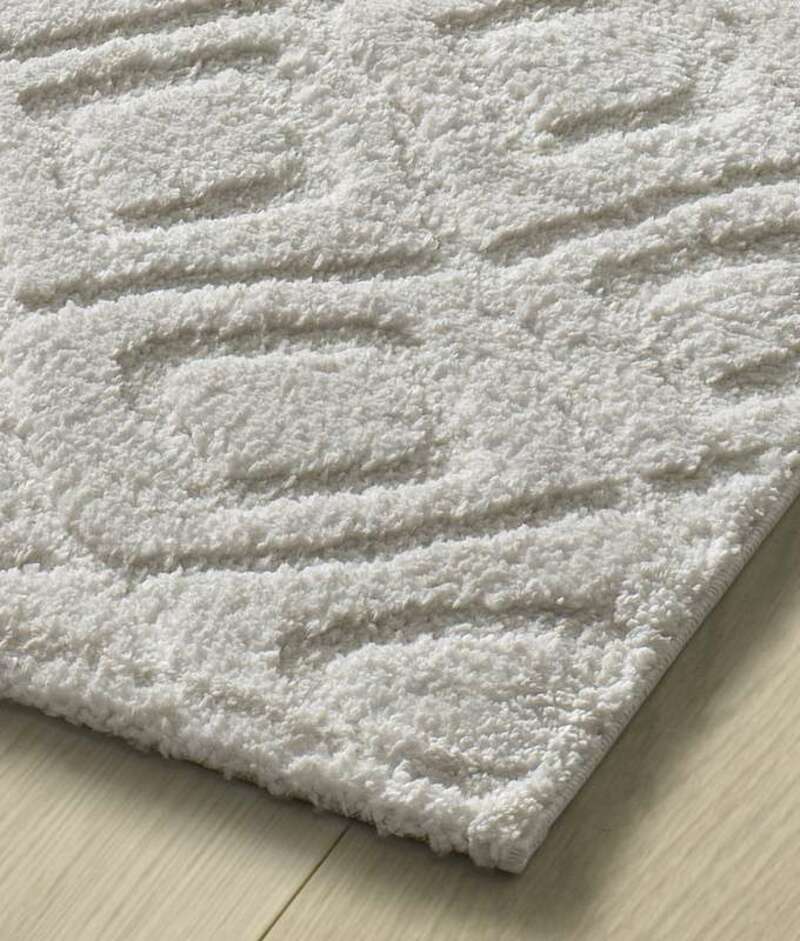 La alfombra de estilo escandinavo 111 Blanco con diseños geométricos inspirados en la decoración étnica conseguirá ese toque de confort y elegancia en tu casa. Esta alfombra de salón también es ideal para dormitorios y zonas de descanso. Su diseño en relieve aporta profundidad y carácter a cualquier estancia.
