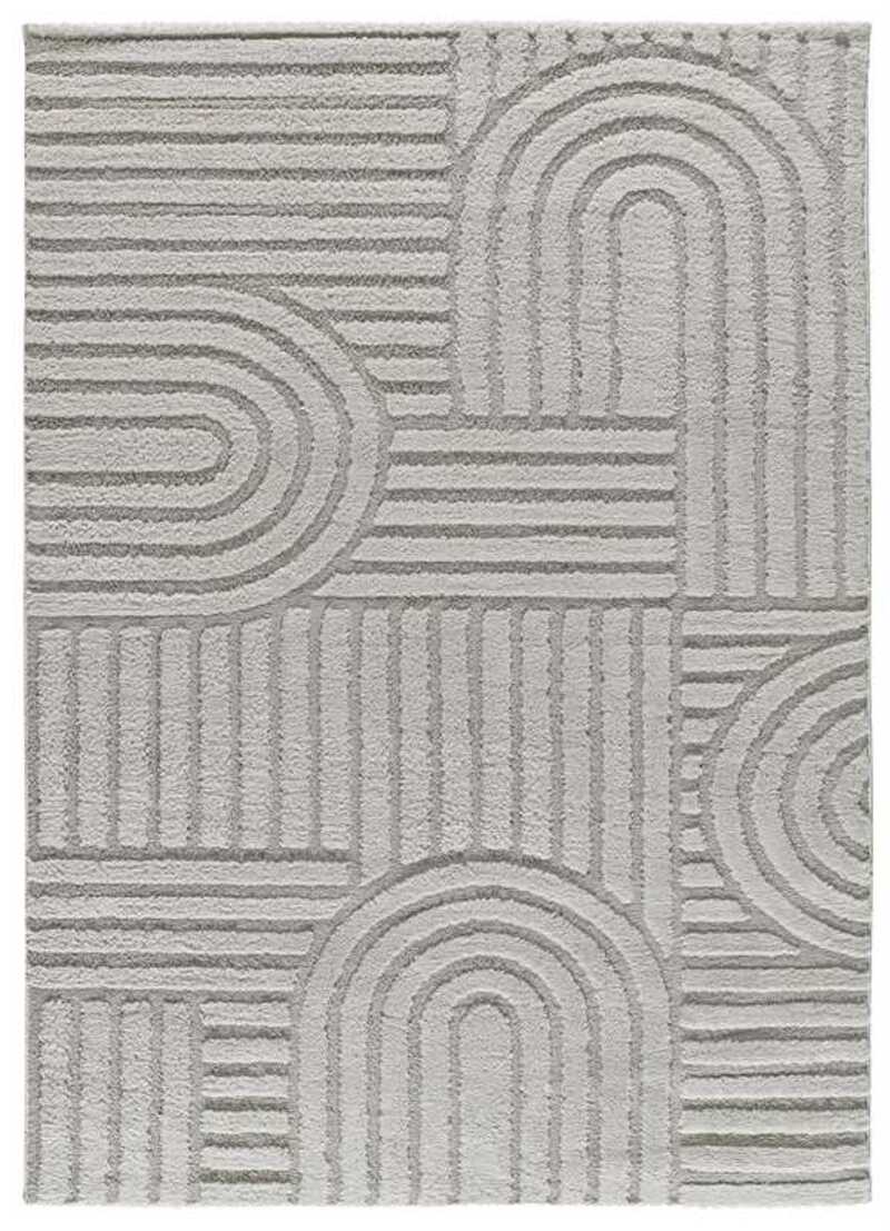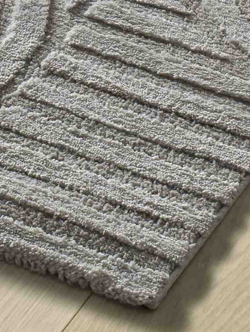 La alfombra de estilo nórdico 54406 en gris plata con diseños geométricos en relieve, aportará carácter y personalidad a tu casa. Esta alfombra de salón también es ideal para dormitorios y zonas de descanso.