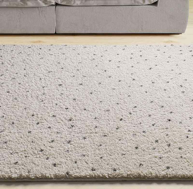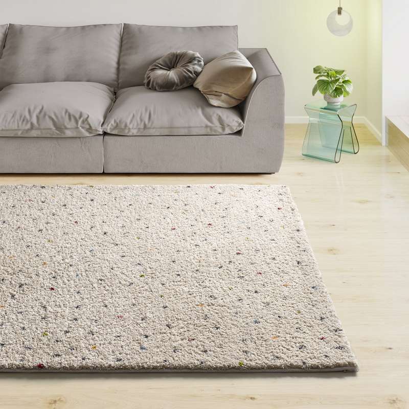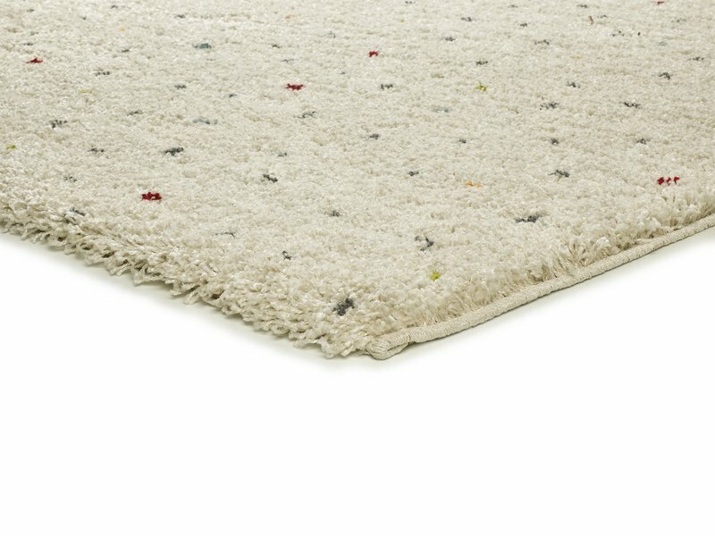 La alfombra de pelo largo (Shaggy), combina un diseño minimalista con puntos en varios colores sobre un fondo crema. Esto hace que combine con cualquier estilo de forma sencilla.