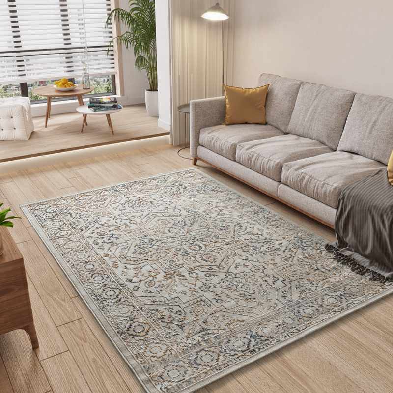 La alfombra vintage 4463 Multicolor, reinventa los motivos clásicos con una paleta de colores cálidos y equilibrados. Sus tonos beige, caldera y azul, crean un efecto acogedor y elegante, ideal para alfombra de salón o dormitorio. Gracias a su acabado en relieve y efecto brillo, la alfombra ofrece diferentes tonalidades a lo largo del día.