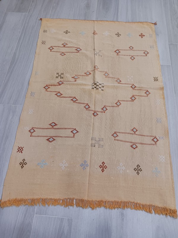 Alfombra Dhurrie Indio Vintage tejido a mano en color Beige y efecto envejecido y desgastado.