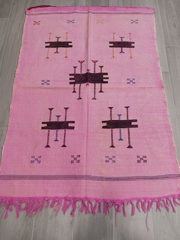 Alfombra Dhurrie Indio Vintage tejido a mano en color Rosa y efecto envejecido y desgastado.